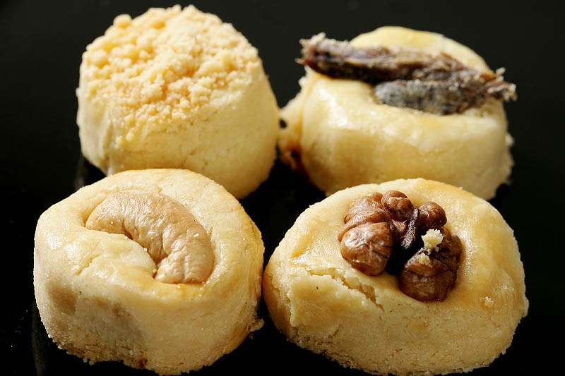 Coloque pedaços de azeitona nos biscoitos, aliche, nozes castanhas, gergelim etc.